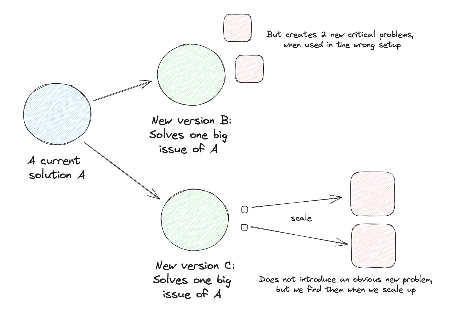 The new solution could solve a more significant problem nicely but cause 1-2 new issues from the start or increase an existing issue. So it is a classic trade-off. One that sometimes can still be valuable if the solved problem is big enough.