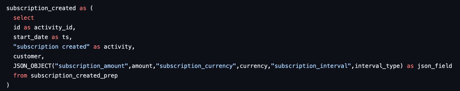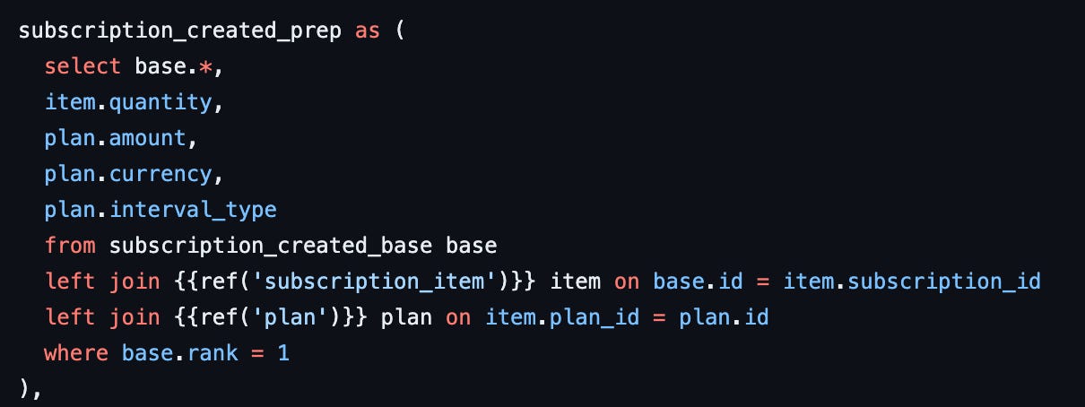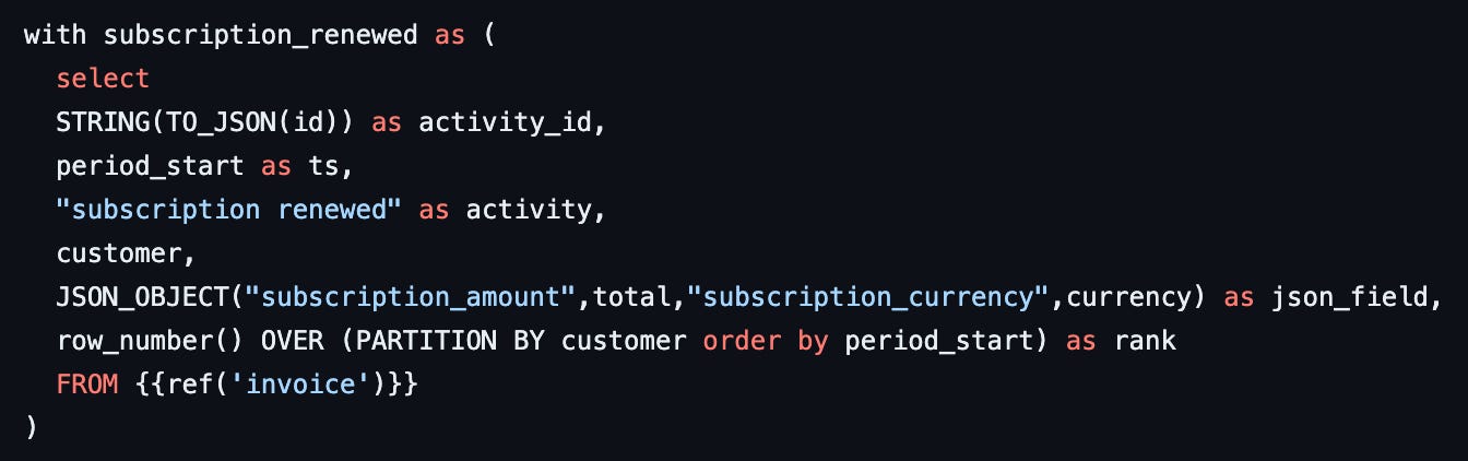 You can find the entire repository with the data model here: https://github.com/deepskydata/demo_stripe_activities