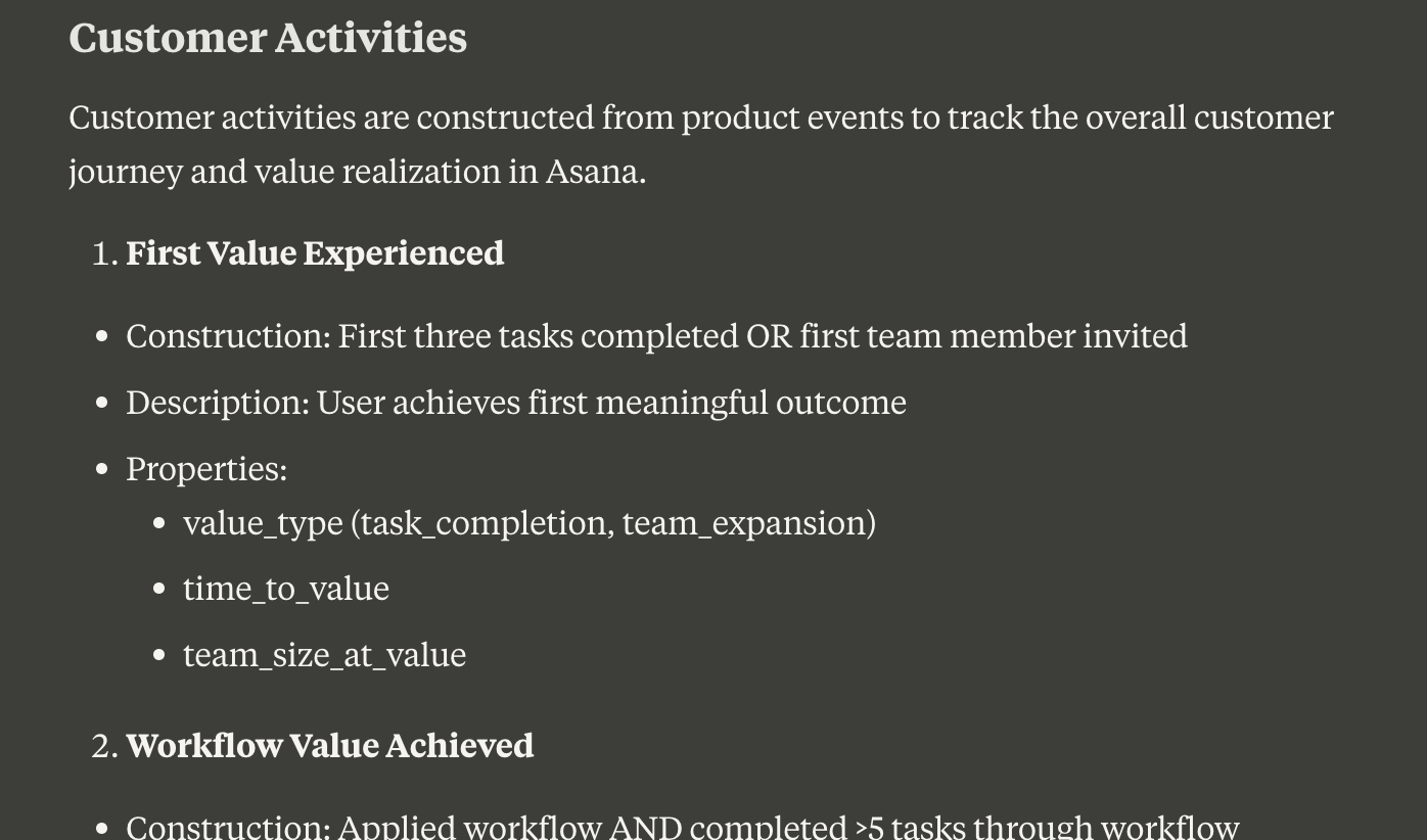 For Asana, goals and workflows aren’t just nice-to-have features - they represent a strategic shift toward enterprise functionality. They deserve their own entities in our tracking plan, with dedicated activities like: