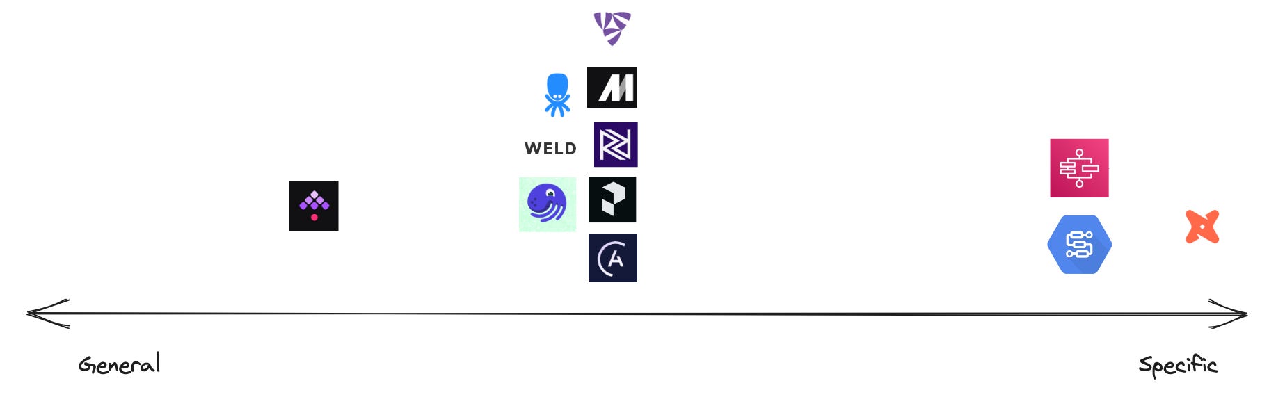 We span the axis from pure orchestration to data platforms. The significant aspect is much more heavy lifting is possible with the orchestrator. Or how dependent you are on external services.