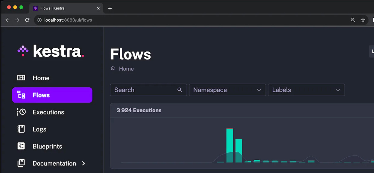 “Hello world” flow introducing the basic concepts (namespaces, tasks, parametrization, scheduling, and parallel flows):