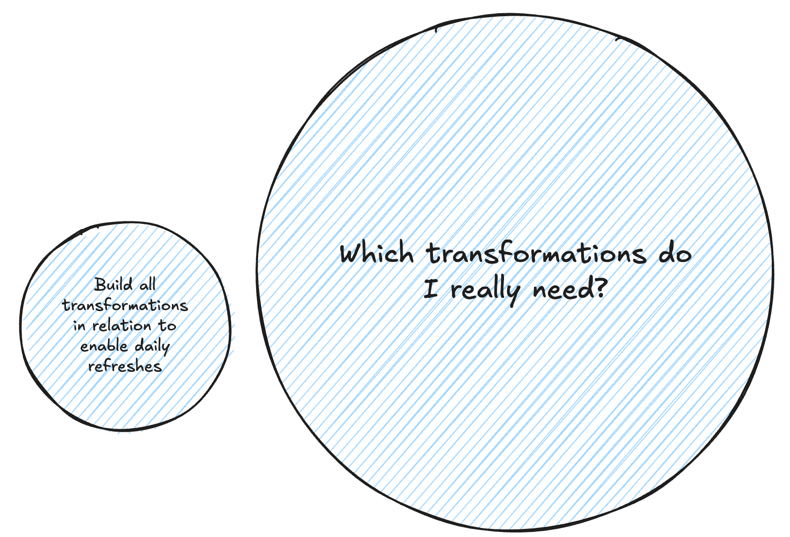 The core problem is the transformations themselves. How many do you actually need? How should they be structured? What’s the right level of granularity? When should you merge logic, and when should you split it apart? These are design questions, and dbt doesn’t help you answer them.