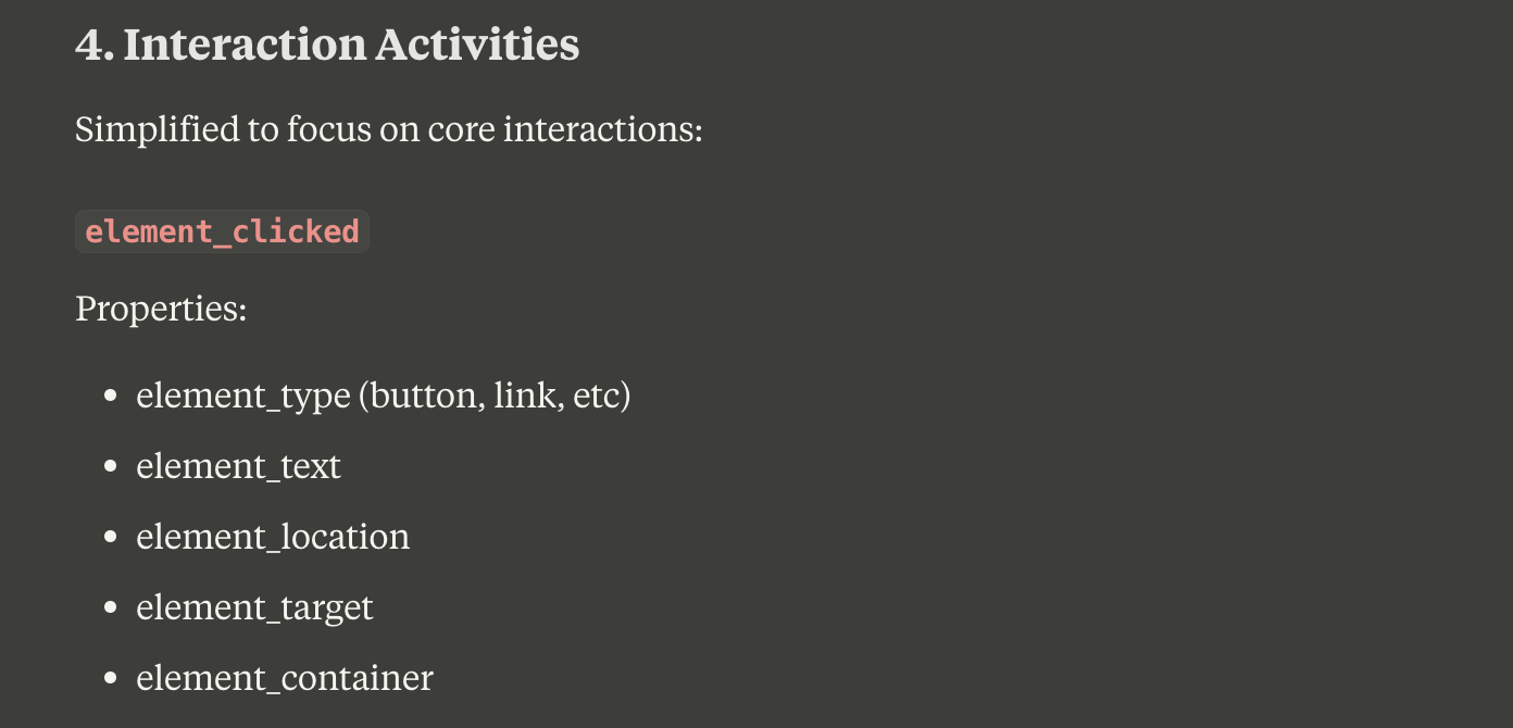 The key is finding the right balance - enough detail to understand product usage patterns, but not so much that you create noise in your analytics. When in doubt, ask yourself: “Will tracking this help us make better product decisions?”