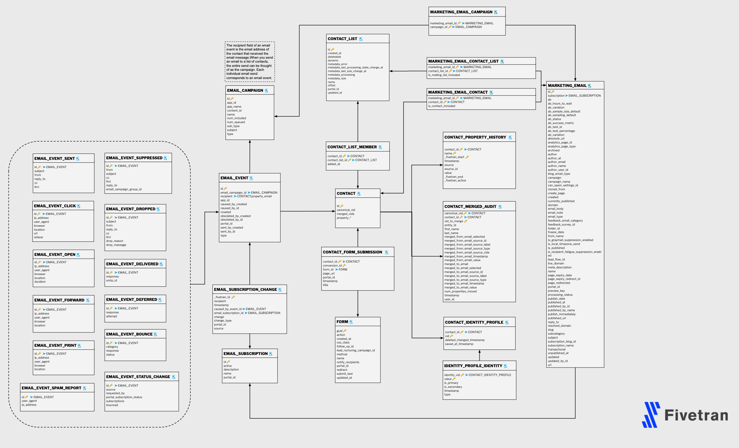 Let’s pick a schema of some Fivetran data that is loaded in our Warehouse. We can use the Hubspot one since this is often our marketing team’s favorite- here is the marketing data model: