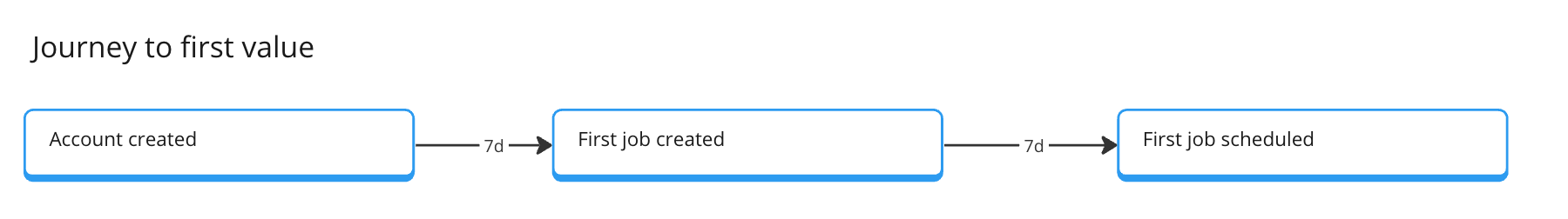 First Job created (7 days after account creation) - we assume that a new account will add a first job when we do a good job. So we want to move people from Account created > First Job created and measure the success for this (something that can then go to the metrics tree)