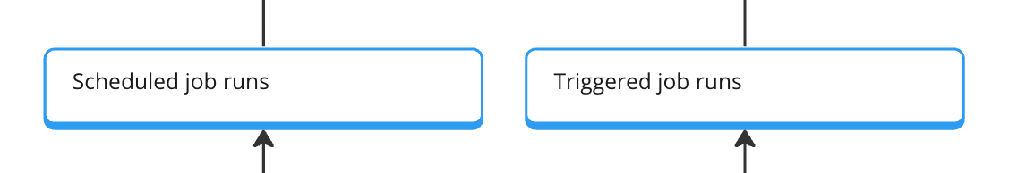 On the next level, we look at scheduled and triggered job runs. This is already a dimensional breakdown. We could also offer this as a filter option in our BI tool. But I like to break it out here already since this information is helpful for product and customer success to enable more scheduled runs, which have a more positive impact on the computed seconds and are also a good indicator for a received value and trust in the platform.