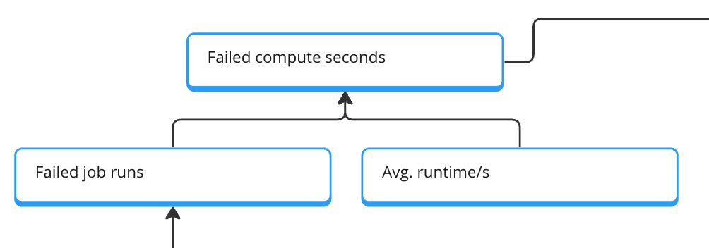 The first simple step is the block about failed compute seconds based on failed jobs and the average seconds. This is an excellent first indicator of an area where our product does not provide value. Not because of us but as a good way for us to intervene and support from the product side (for example, pausing failed jobs after the X run).
