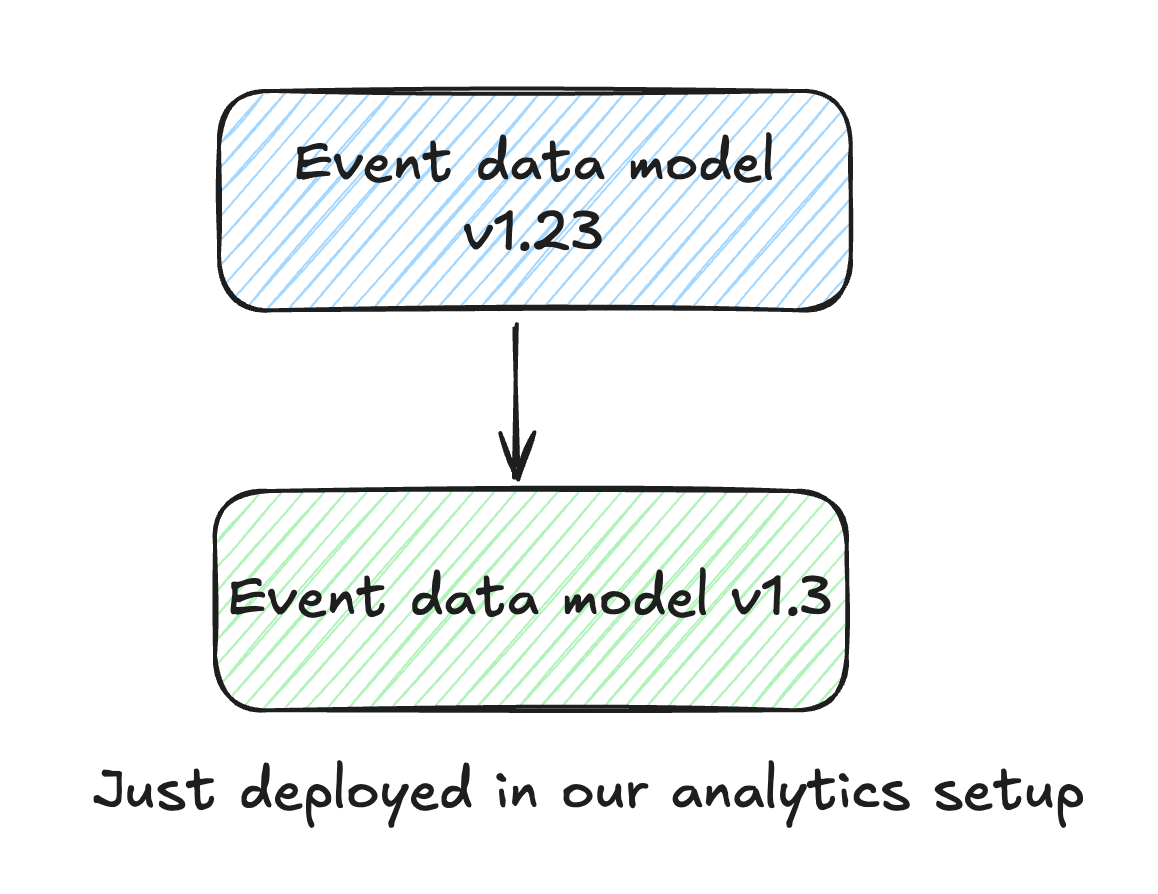 When it comes to event data design (or model), I prefer an approach that involves managing most of the event data processing in the data warehouse. With this method, we track only about 5% of events in the front end, sourcing the majority of events from the application database and external services like Stripe.