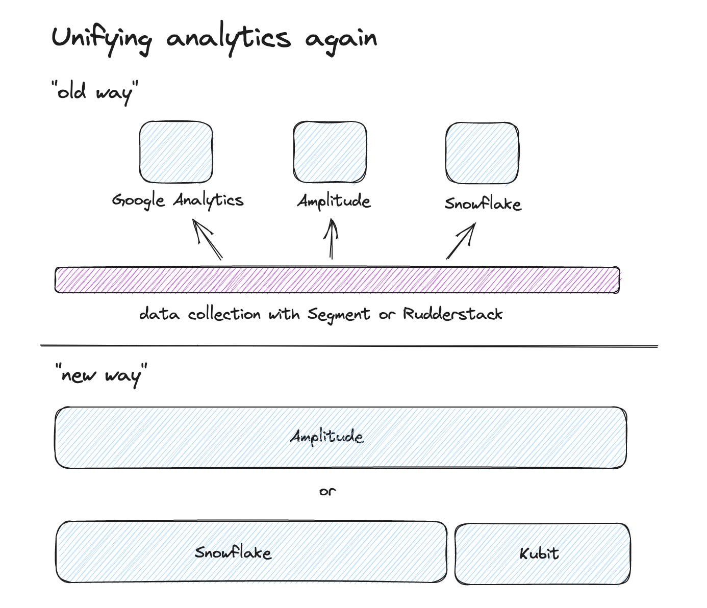 And we may see again a time when it makes more sense to have one analytics product for all teams. For quite some time, I recommended multi-product setups. Just because there were specific marketing needs (like marketing campaign attribution) and special product needs like cohort analysis that you couldn’t get with one product. So we ended up with something like Segment or Rudderstack for event collection and then Google Analytics and Amplitude on top of this data. Not a bad solution but with plenty of trade-offs.