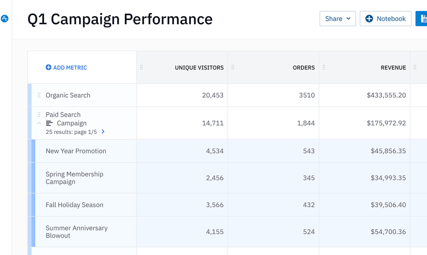 There is an opportunity for products to offer an advanced version of Google Analytics with a consistent product design. Something in between Google Analytics and Adobe Analytics.