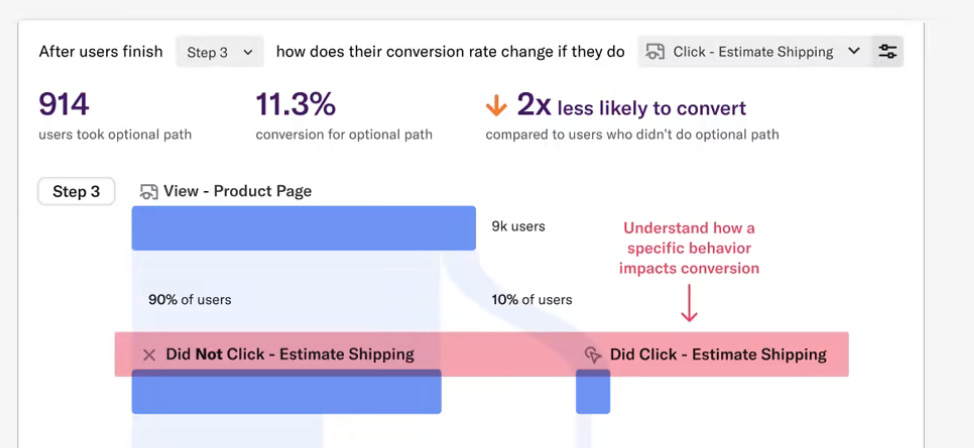 The AI-based insights can surface interesting user patterns you were unaware of (since they capture every click or touch). One example is that you set up a classic funnel and Heap will recommend you to add or remove specific steps because of the additional data they have collected.