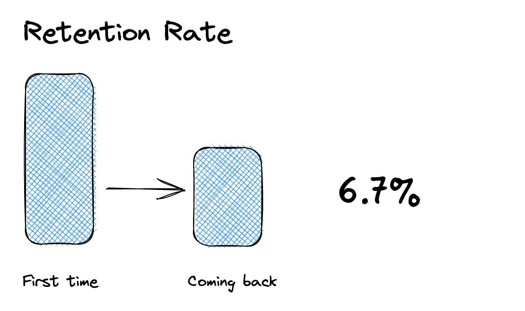 Now we have a “first-time” and a “coming back” condition. How do we calculate our retention? We can do this with a simple funnel and conversion rate.