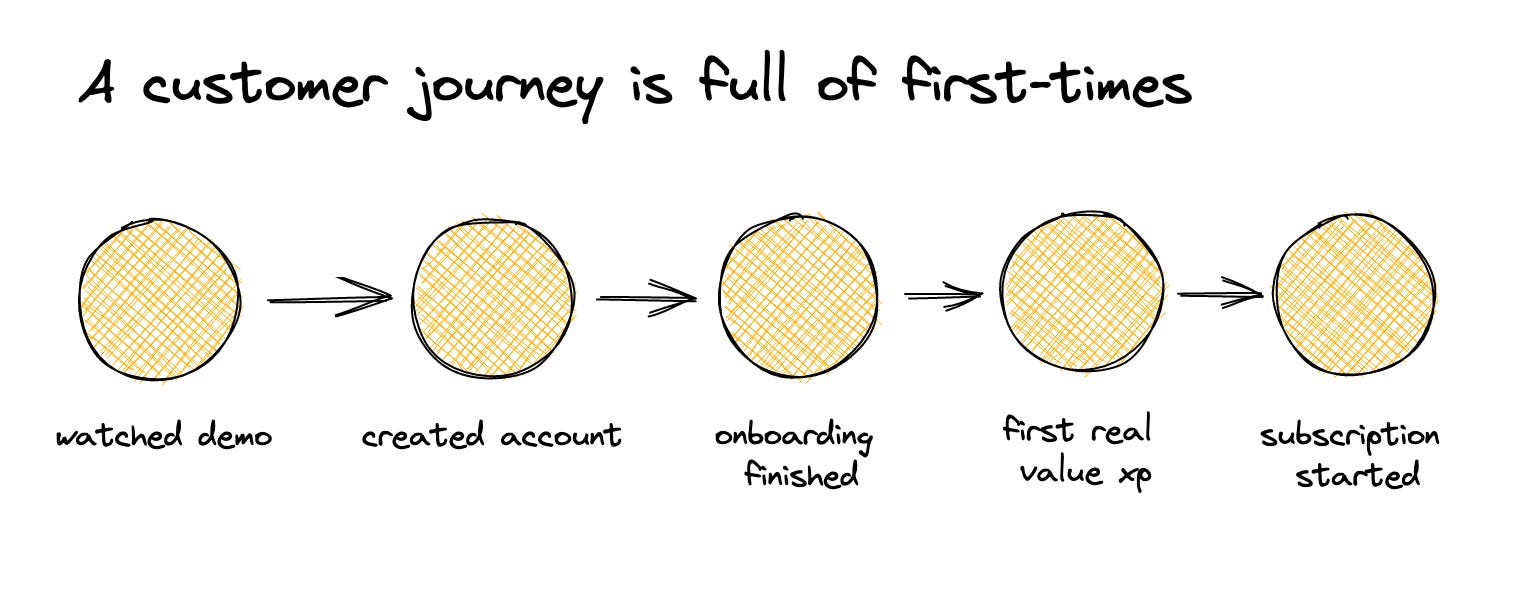 - First value experience - a lot more tricky since you first have to create an event where a user has experienced a first value from your service. This varies naturally based on your service/product. In an analytics tool, it could be the first chart shared, in a todo app, the first todo completed.