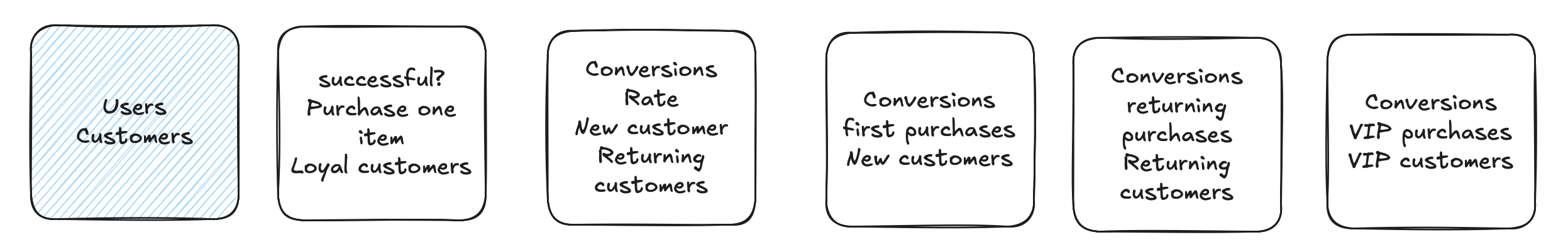 Now, what makes a user successful? Let’s call them customers because that’s what they really are in an online store. Unlike sessions (where success is pretty simple - did they buy something?), customer success is trickier.