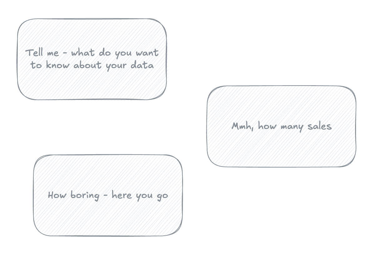 So this whole “chat with your data” thing doesn’t solve the fundamental problem. Sure, someone from marketing might have a specific question that’s been bugging them for months, and they can finally get an answer without bothering the data team. That’s nice. But they’re still asking the same limited questions, just faster. They’re not suddenly asking better questions. And that’s why this isn’t vibe analytics - it’s just the same old analytics with a conversational interface slapped on top.