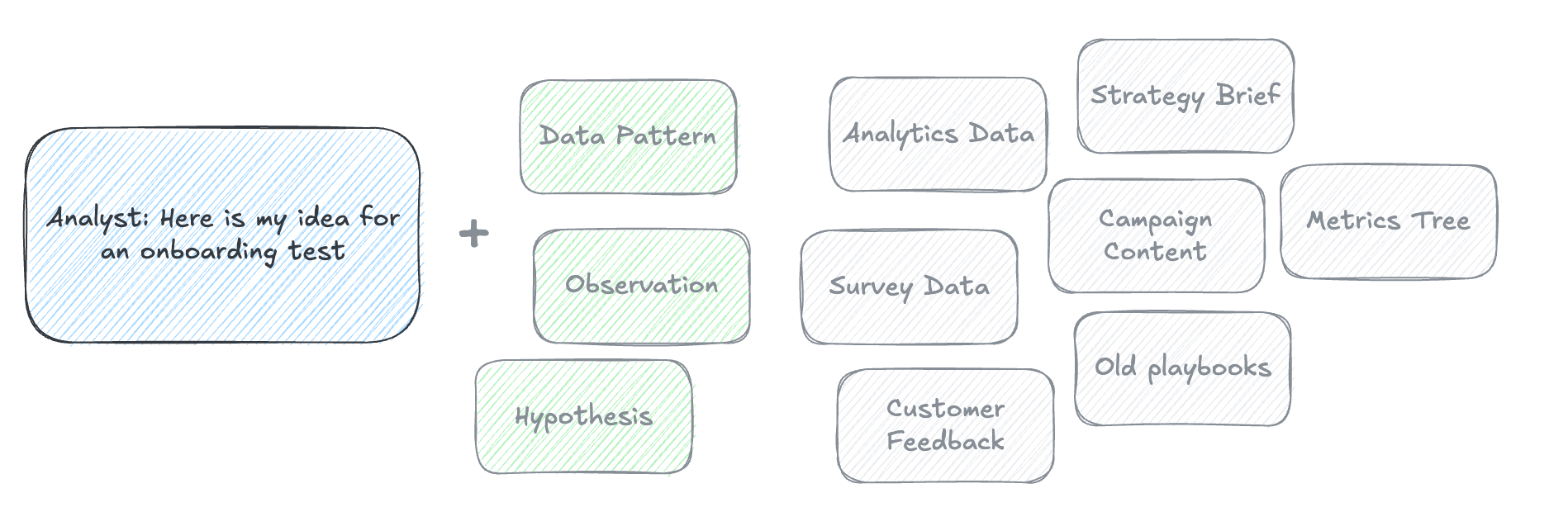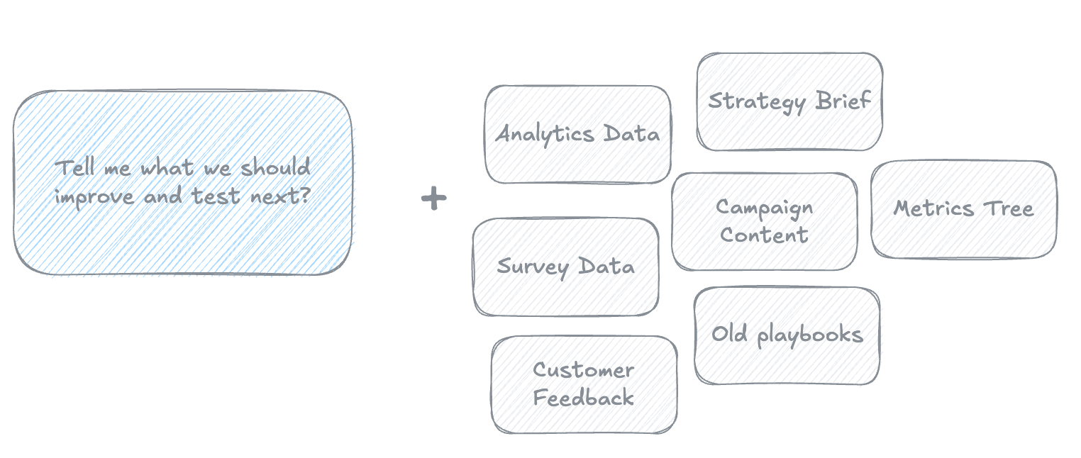 Let me paint you a picture. You run initiatives - could be marketing, growth, product, whatever. Every two weeks, you do a check-in. You pull all the data - and data here means everything. Analytics data, sure, but also qualitative feedback, customer interviews, support tickets, strategy documents, asset performance, even Slack conversations about the initiative. You dump it all in, run a full analysis, develop next steps, and implement them over the next two weeks. Then you repeat.