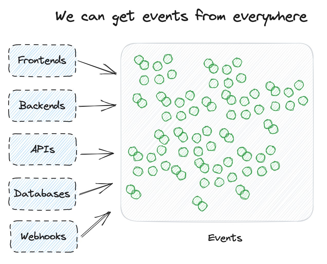 Then we wanted to know what happens in the third-party tools we use. Well, they offer an army of webhooks, so why not receive them and add them as events?