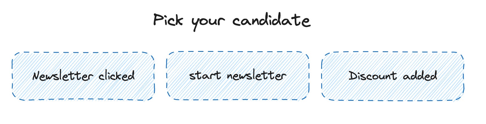 You want to analyze the impact of newsletter subscriptions and the discount users get on your orders. So you check your current setup to find proper events that would allow you to build a cohort of subscribed users who got the discount.
